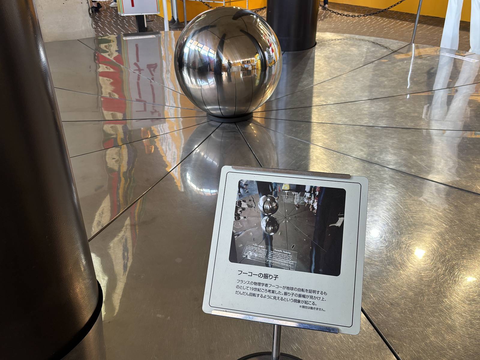 鉄鋼館の出展物だったフーコーの振子。今は球体は地上固定です。