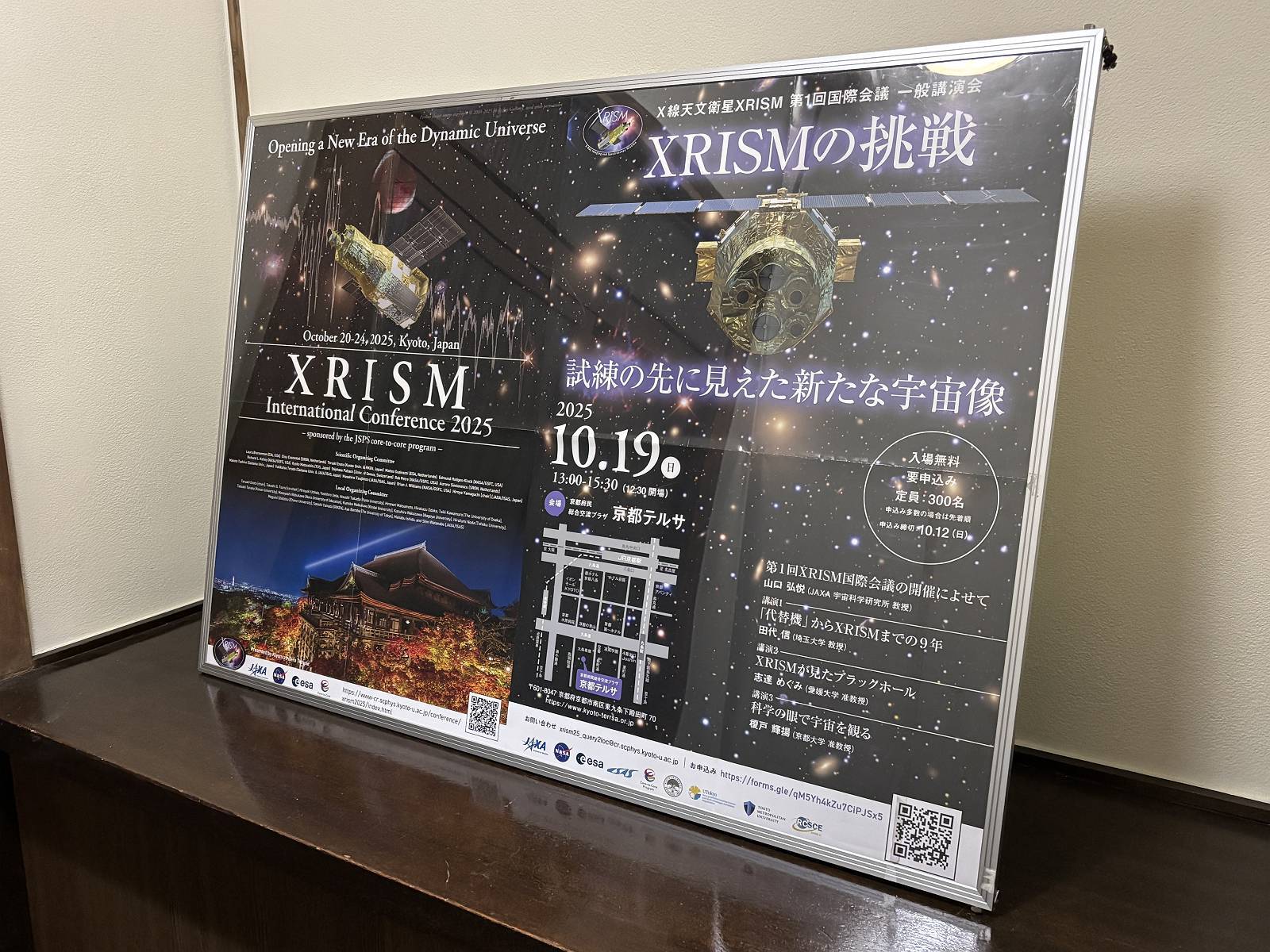 今回の国際会議のポスター(英語)と一般講演会のポスターが両方ともカッコよくて、フレームに入れて飾ってます。X線は地上に届かないので、X線天文衛星が人類が持つ「宇宙の目」になります。