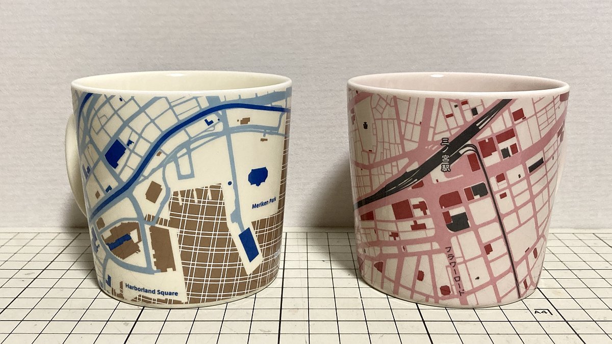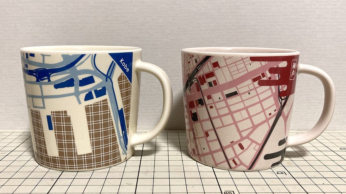 以前は文具中心だったような記憶があるのですが、最近は雑貨全般に展開していて、地図柄のマグカップも扱っています。オンラインストアの案内が流れてきたので何となく眺めていると、あるやん、神戸柄。2種あったので両方ポチっと。