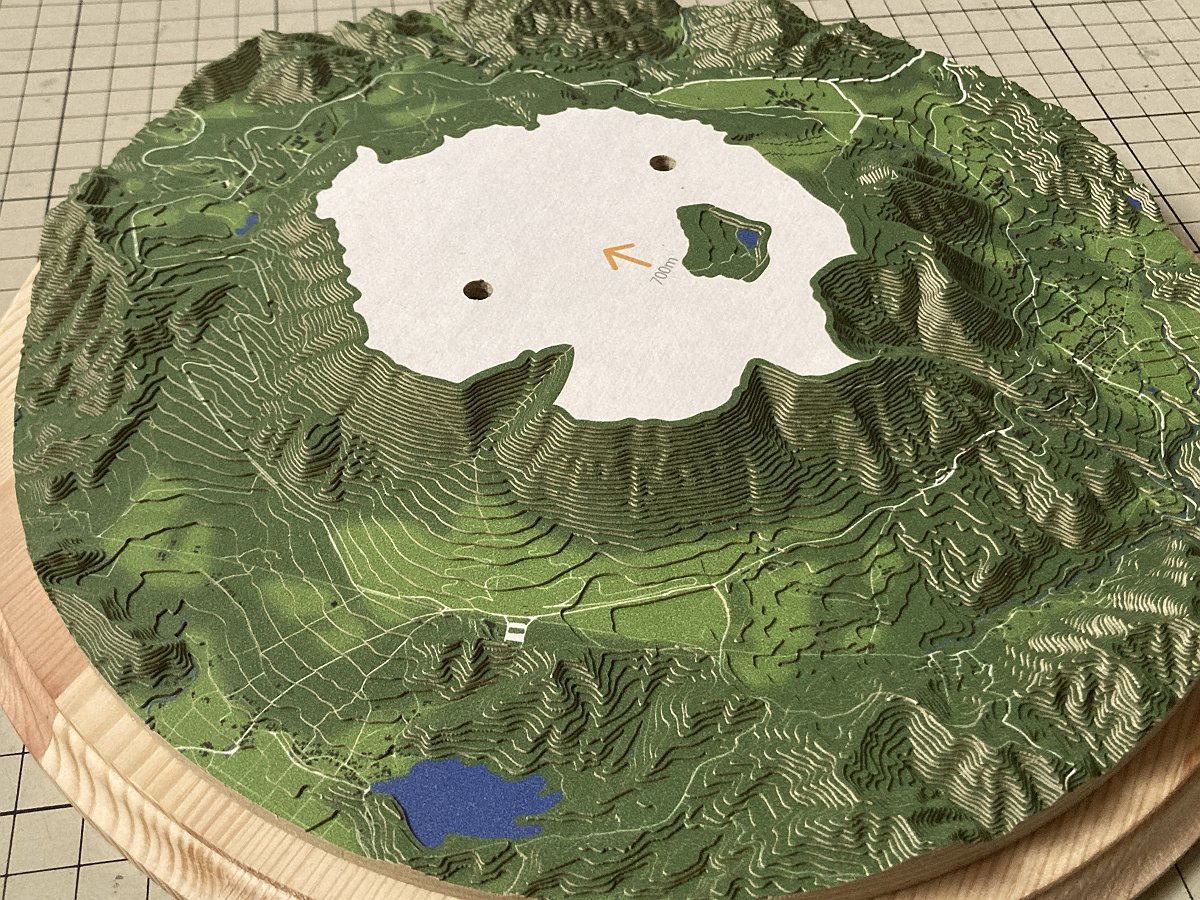 紙で作る山岳立体模型「やまつみ」。島根県にある三瓶山のキットは、三瓶自然館サヒメルでしか扱いのない希少品。5年越しに手に入れた逸品を一週間かけて積み上げました。