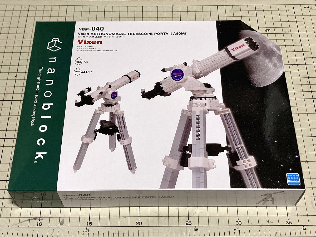 ナノブロックのビクセン天体望遠鏡ポルタUA80Mf。 @keistellaさんの配信を見ていて、うっかりポチってしまいました。