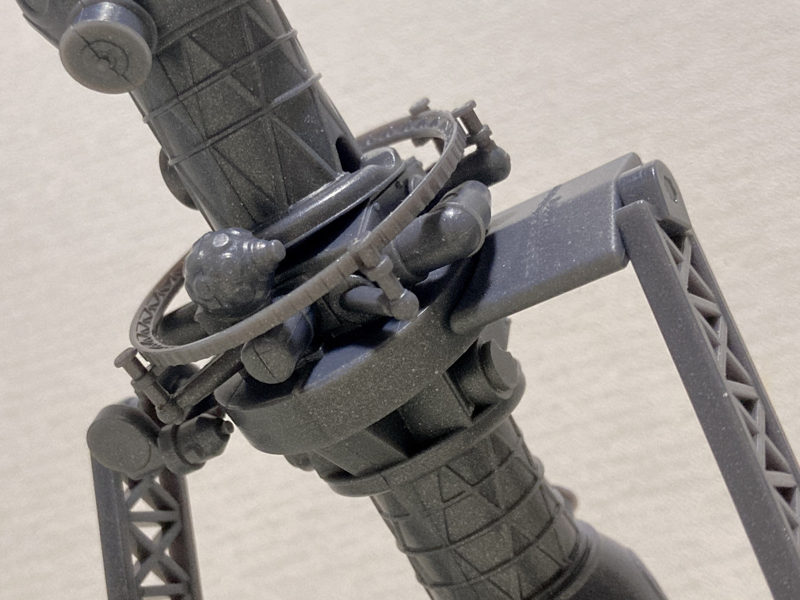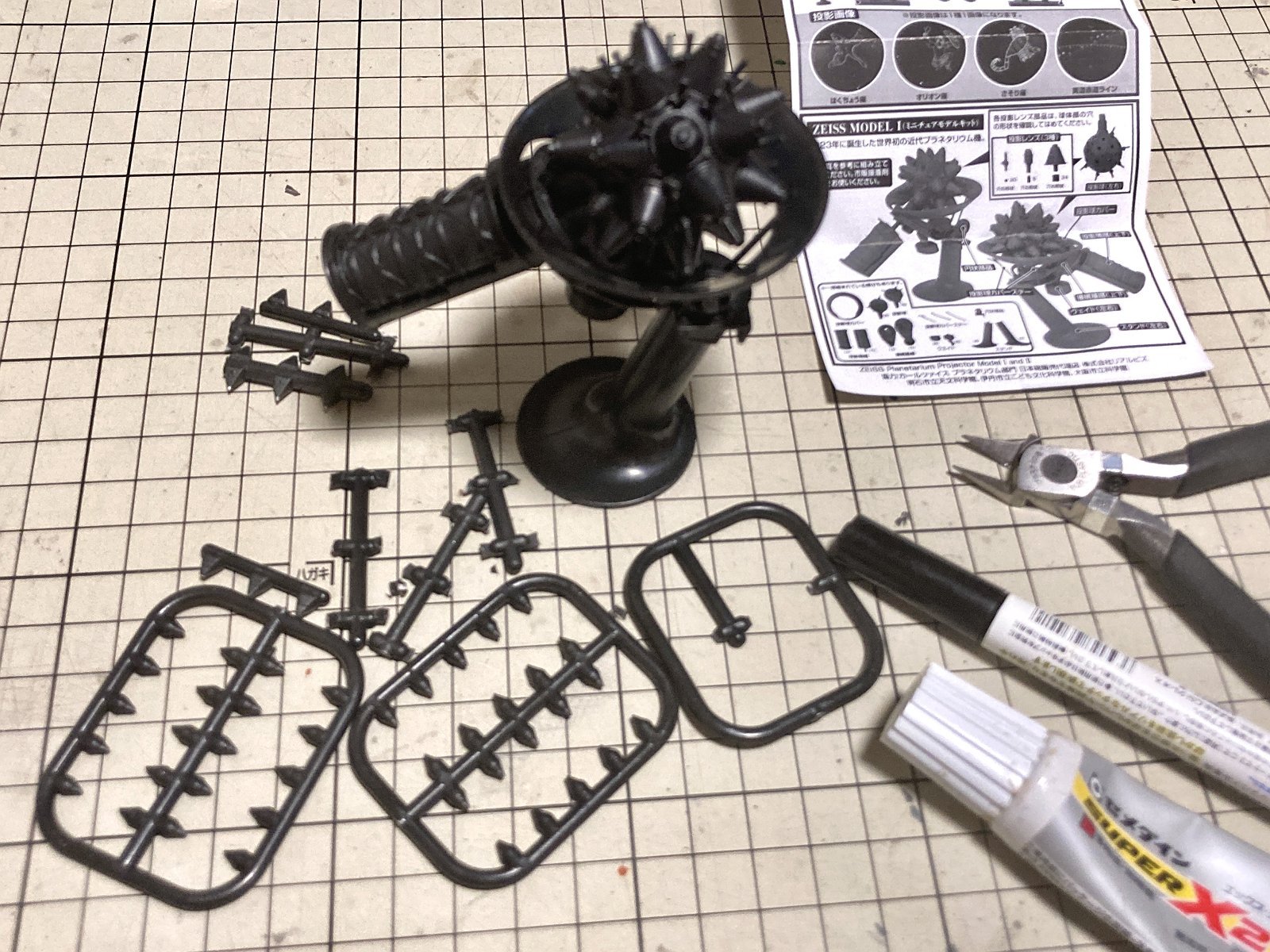 接着剤なしで、パーツをはめ込んでいくことで完成するスナップフィットモデルですが、どうしても穴のきつい部分やゆるい部分があります。はめ込みが緩いところは接着剤で固定(一箇所だけ使用)しましたが、ABS樹脂なので通常のプラモ用接着剤は対応していません。抜け落ちさえ防げればよいので、手元にあったセメダインスーパーXで固定してしまいました。
