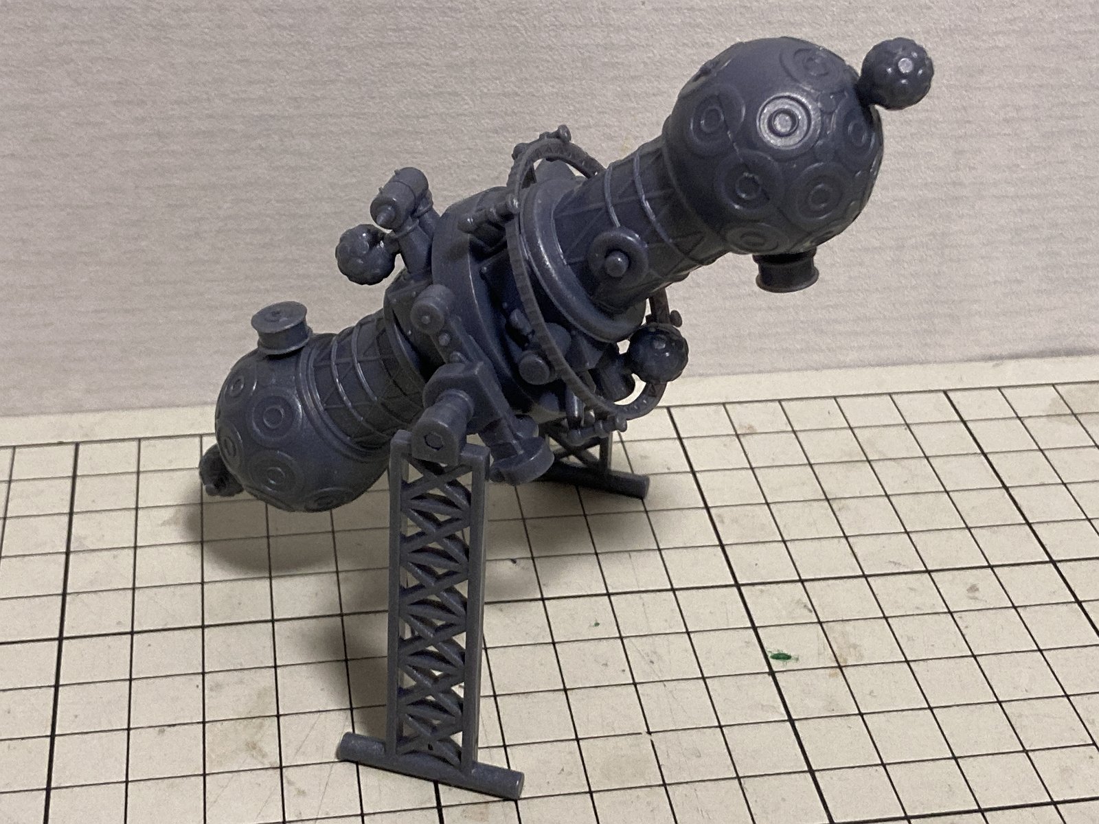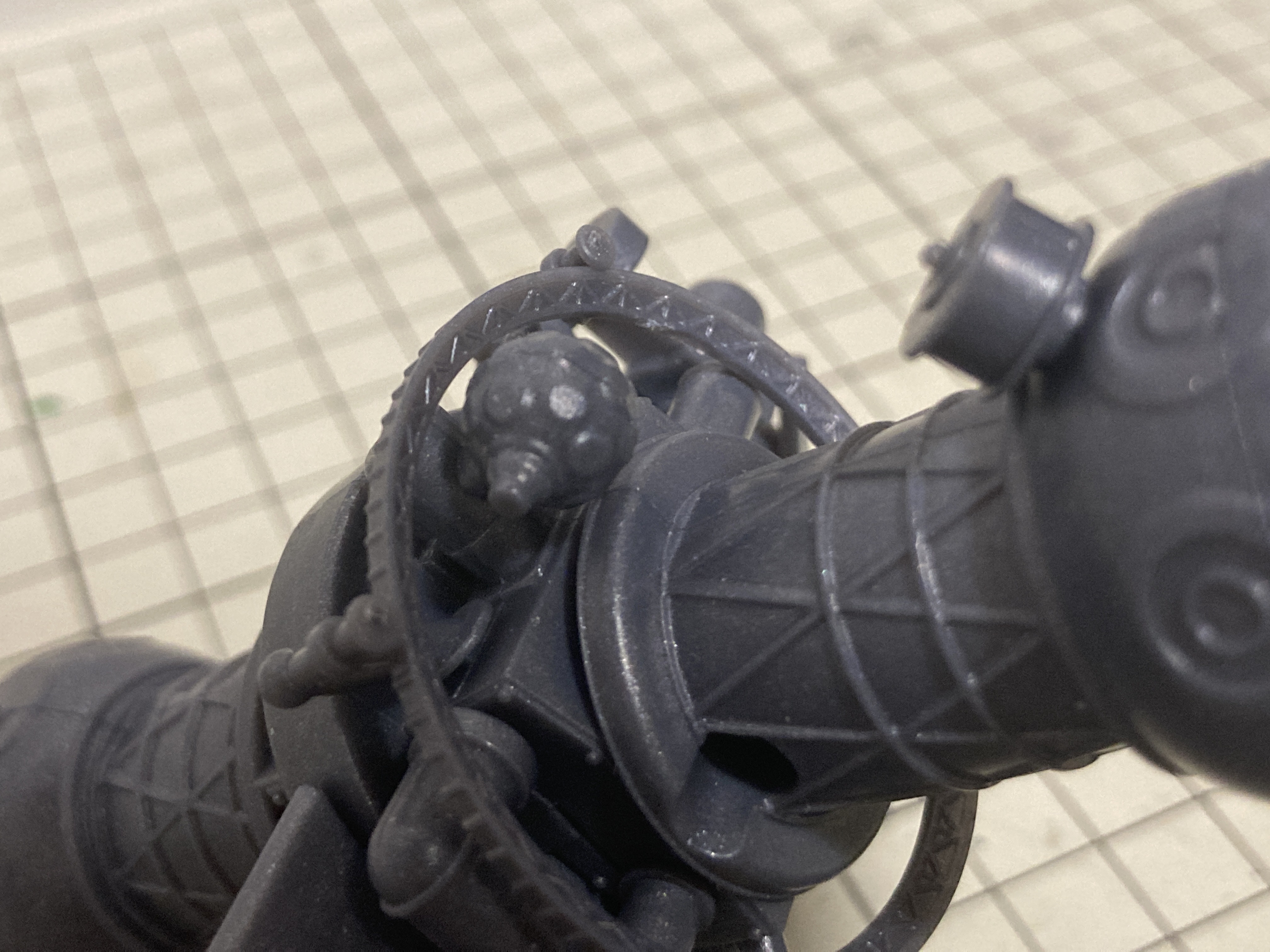 カプセルトイをより実際のU型に近付ける改造をするなら、@緯度変化のスリップリングカバーを削り込んで小さくして、A恒星投影球の廃熱口のようなモールドを削り落とし、B歳差運動のモーターを片方削る。あたりでしょうか。きれいに削るのは大変ですが、新規パーツを足すよりはまだ難易度が低い。このカプセルトイ、実はU型とUPP23/3型のコンパチブルキットなのかもしれません。