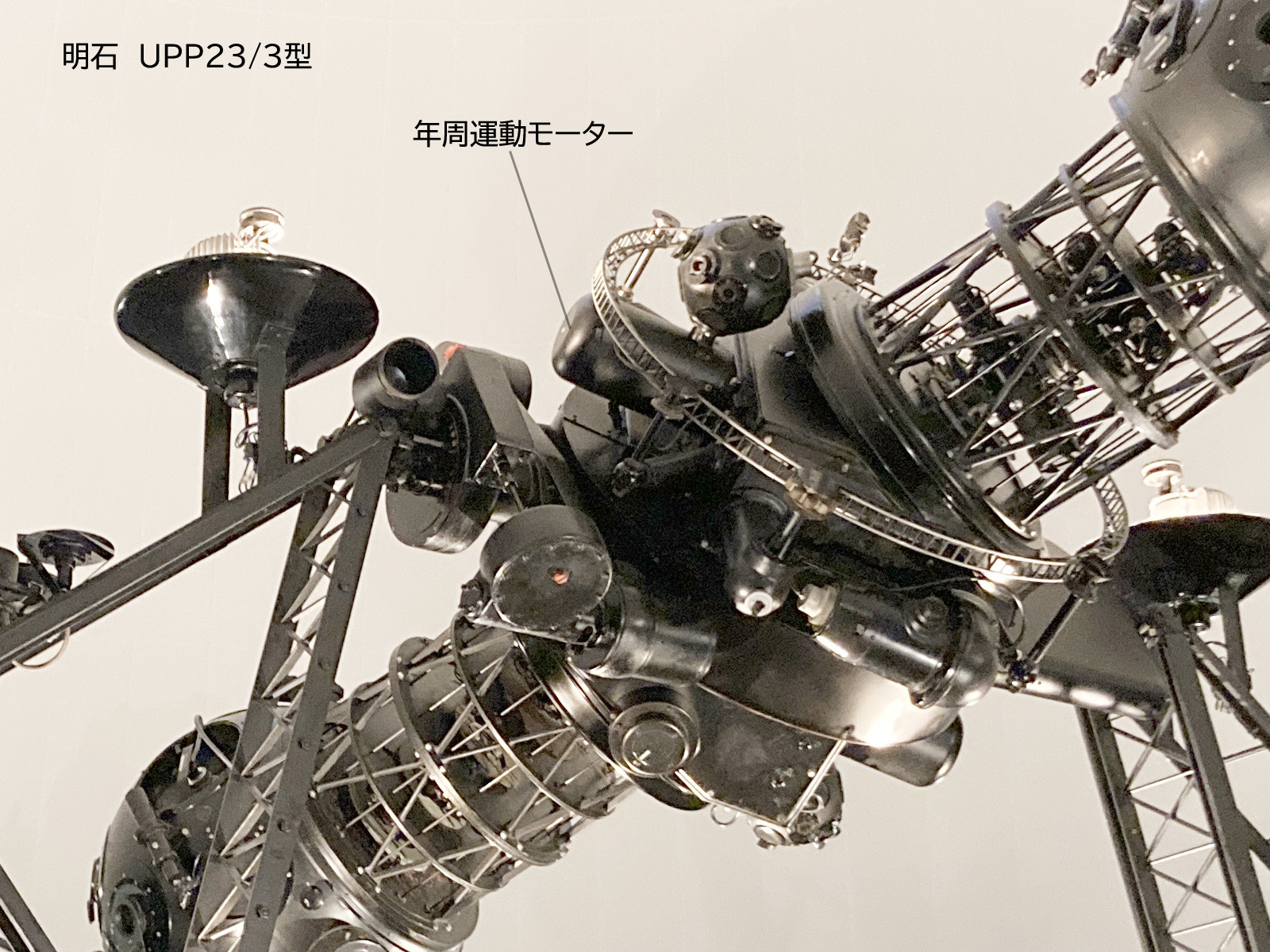 細かいところに行くと、南天側にある歳差運動のモーター、明石のUPP23/3型では写真の手前側に付いていますが、大阪のU型は反対側に付いています。