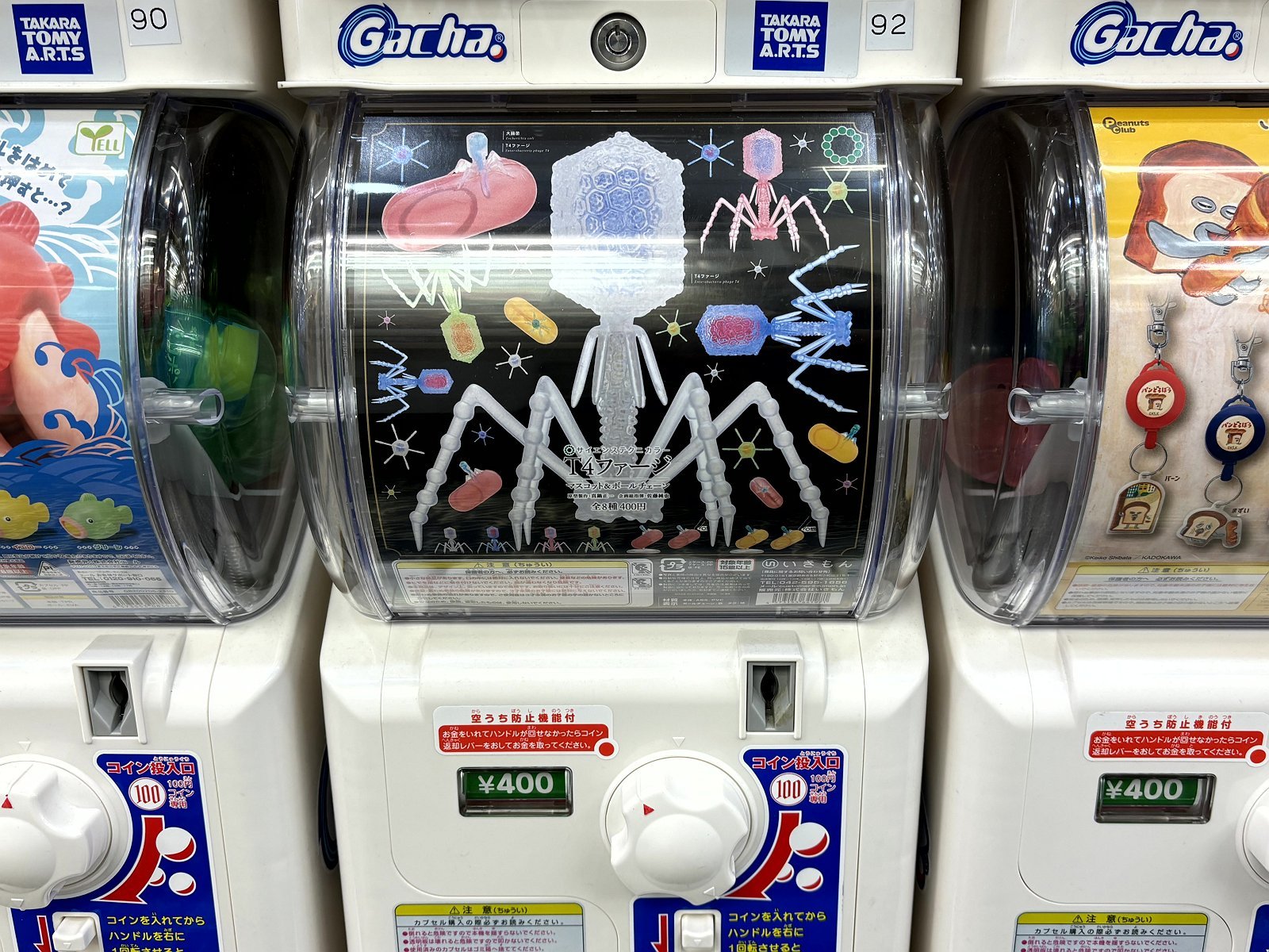 元町商店街の1丁目、T4ファージのガチャがあったので回してしまいました。高校生物で習ったんですよバクテリオファージ。