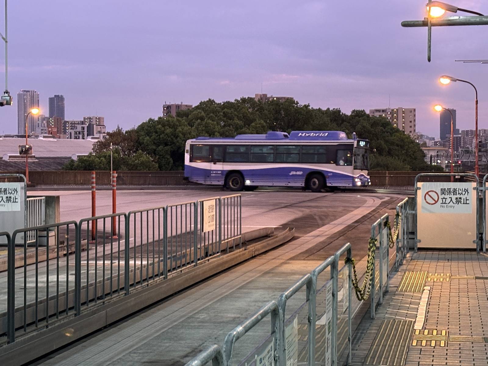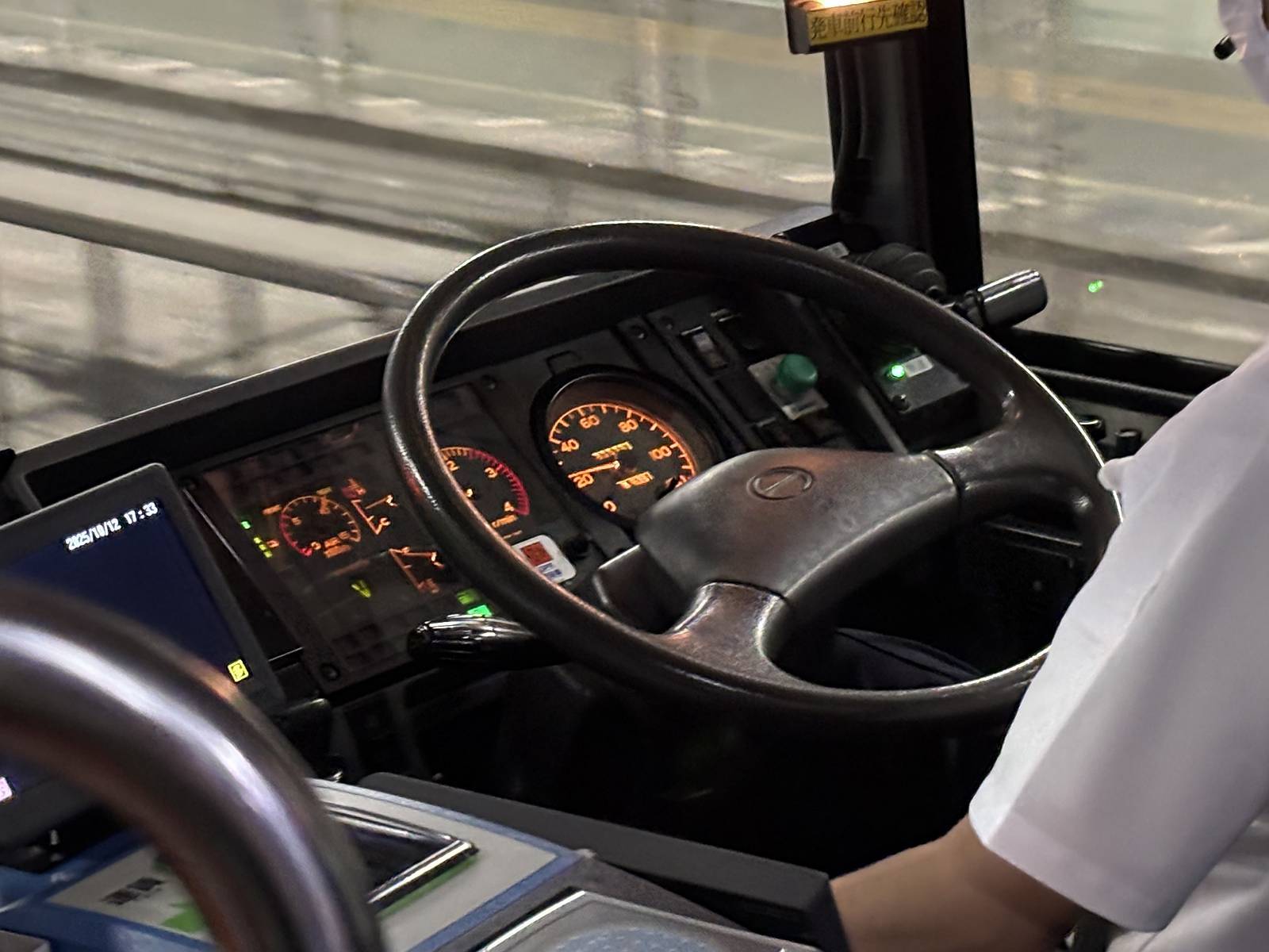 ガイドウェイがある高架区間では運転士はハンドル操作を行わず、アクセルとブレーキだけで運転します。運転士さんがハンドルを回していないのを見るとふつうのバスではないのだなあと気付きます。